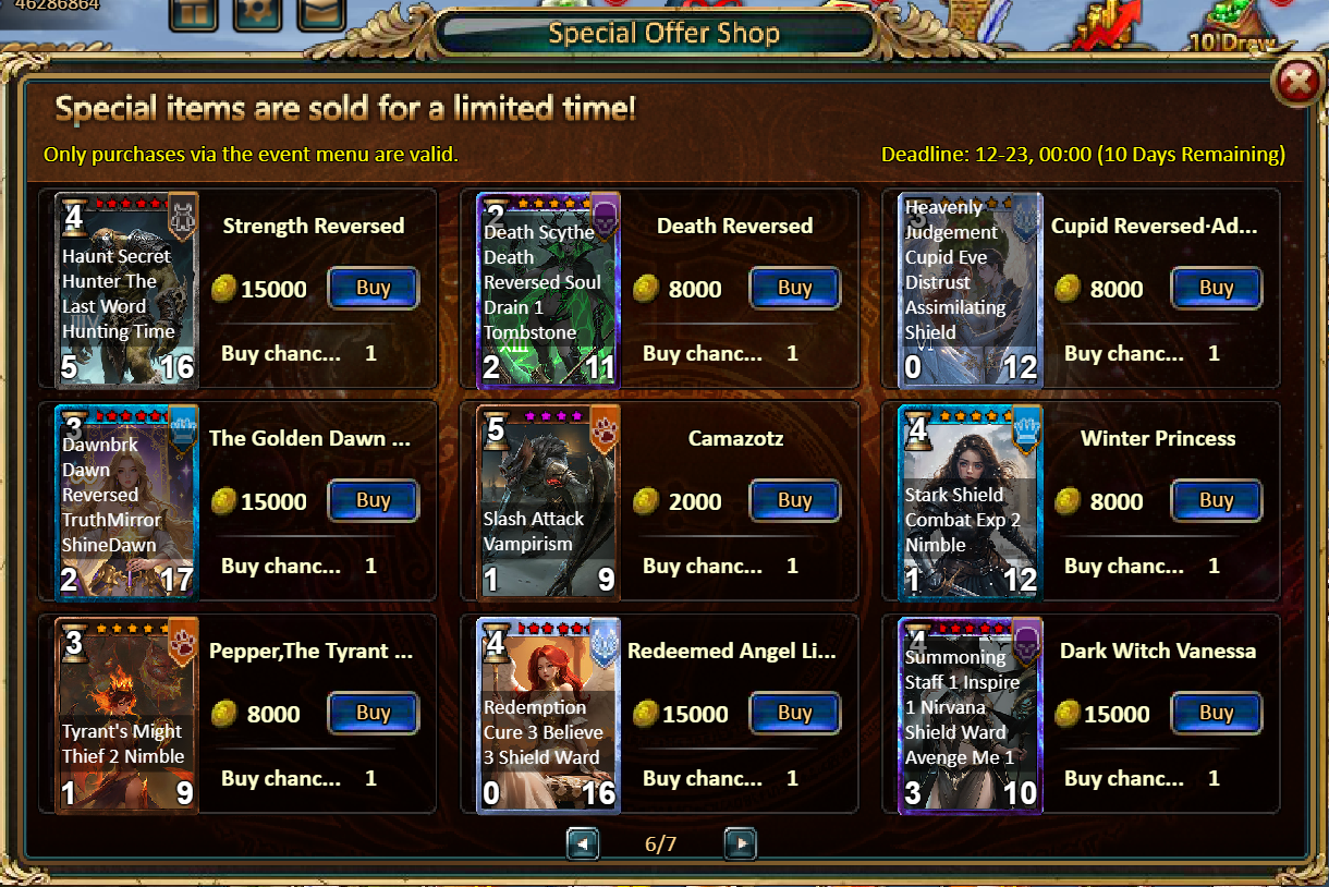 1.Fixed the issue where the Auction price error for [b]“Enchantress Evelyn (Epic)[/b] “and the [b]”2nd Anniversary Cake”[/b].