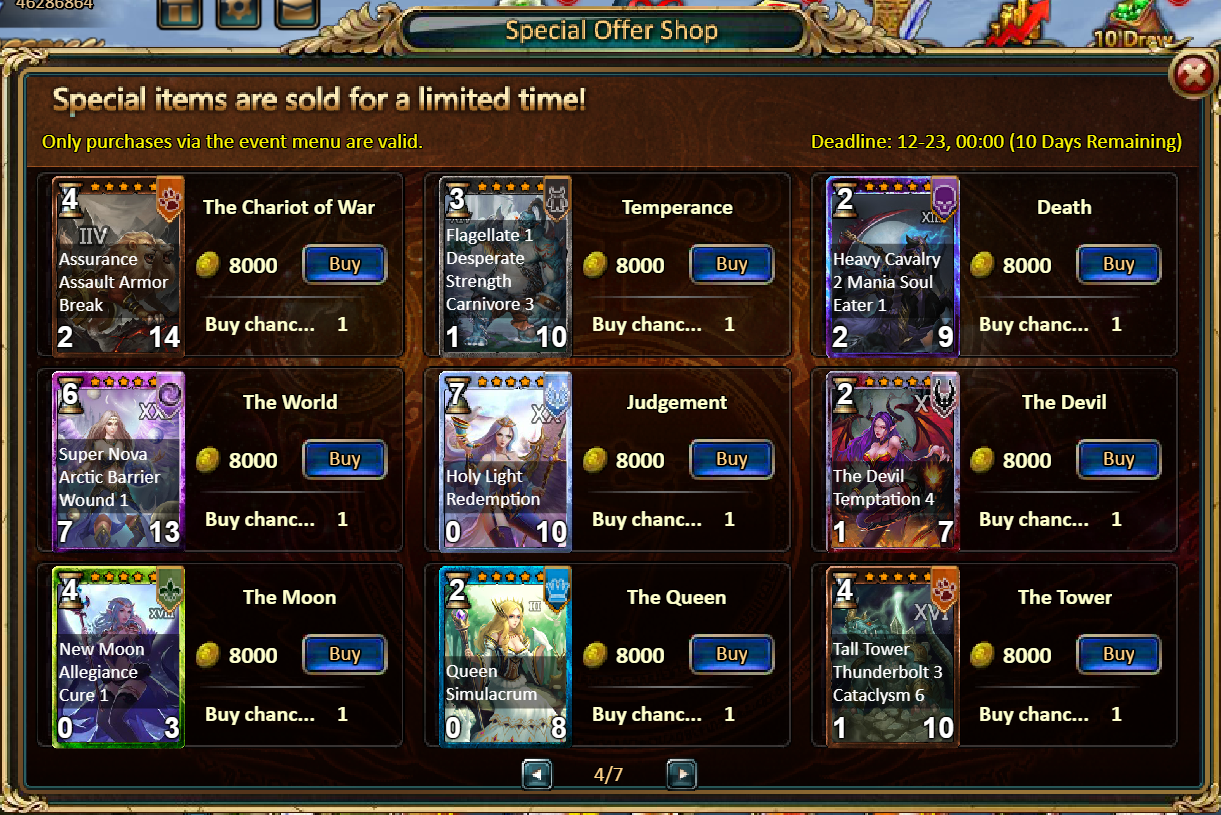 Consume 70,000 gold coins: Fire Ruby*2, Godlike Box II*4, Silver*4,000,000