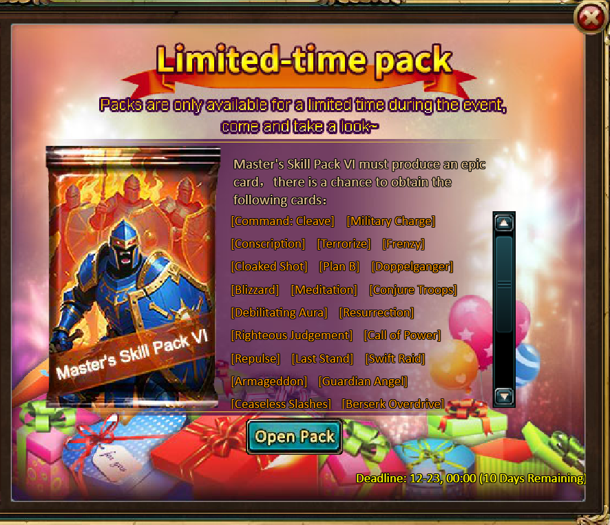 [u]20 packs of Master’s Skill Pack VI - Master’s Skill Pack VI*10 / Silver*1,000,000