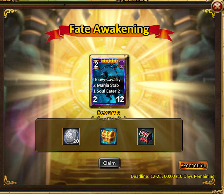 5.Cumulative Gold Rebate: 10000 - Death (Legendary)*1 / 30000 – Death (Godlike)*1