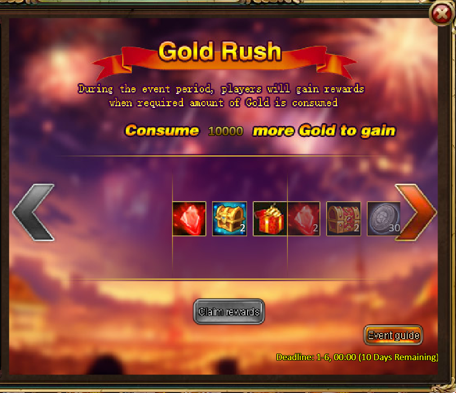 Consume 30,000 gold coins: Fire Ruby*2, Godlike Box II*2, Silver*3,000,000