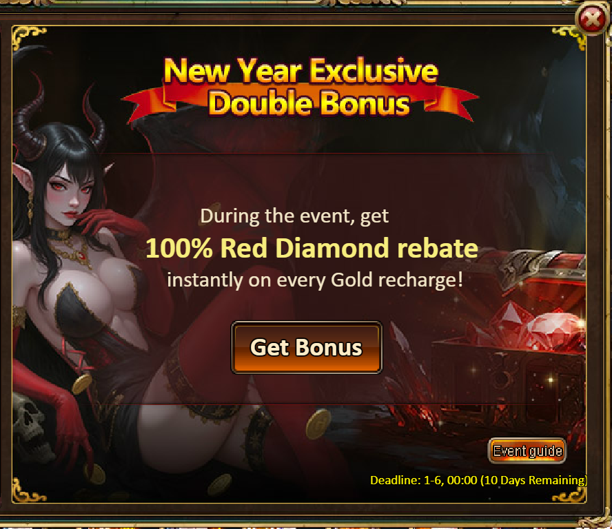 2.Red Diamond Storm: Red Diamond*2000 / Dragon Box*1 / Silver*50,000