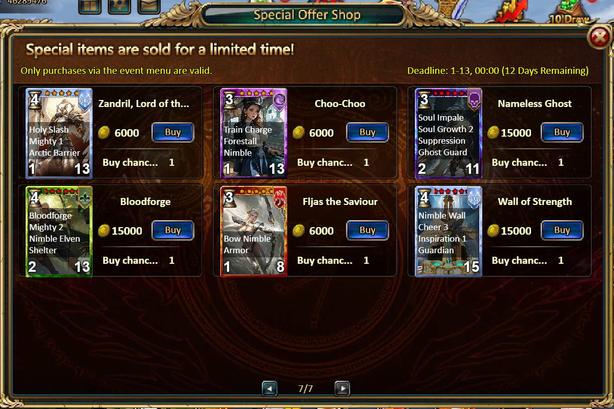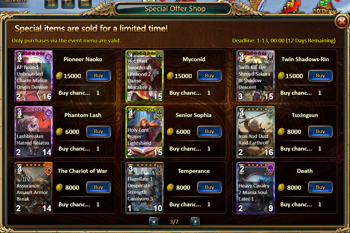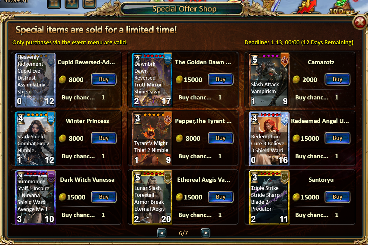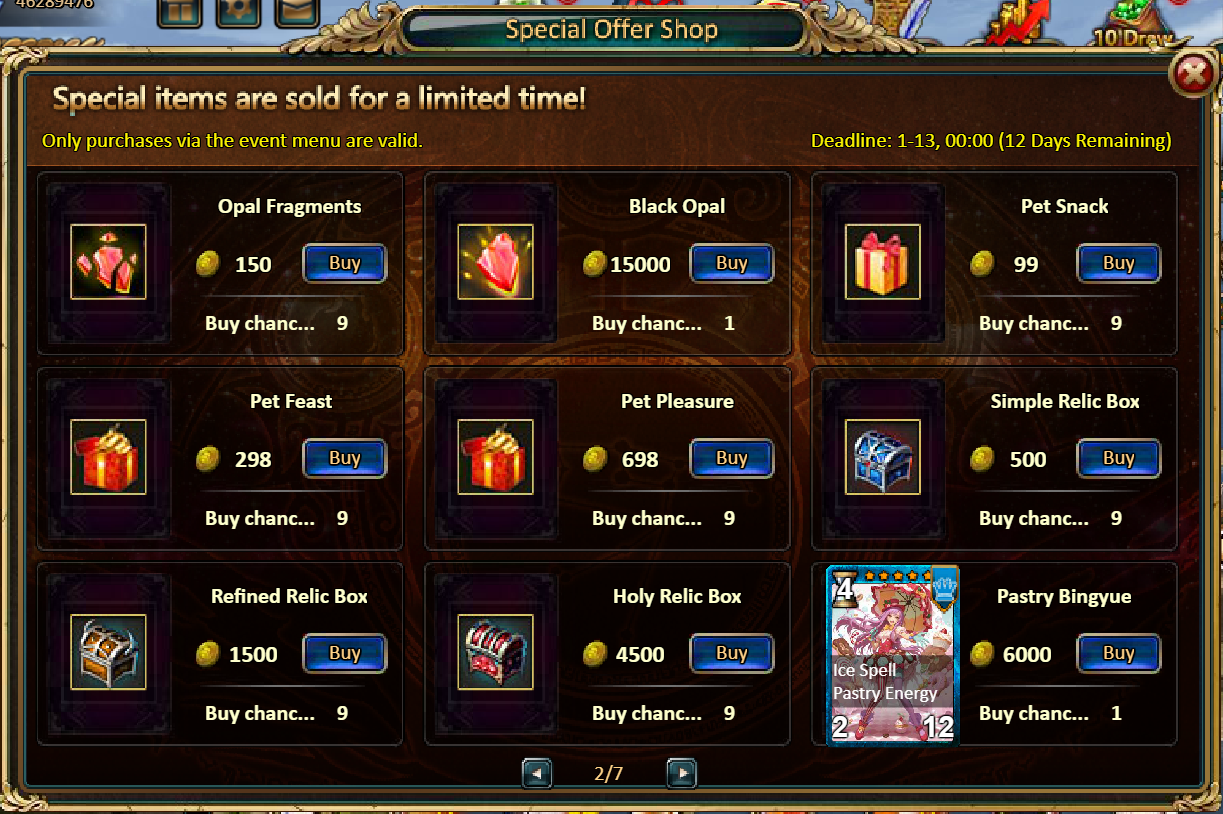 Consume 90,000 gold coins: Black Opal*1, Godlike Box II*6, Solar Chest (Legendary)*6, Silver*5,000,000[/u]