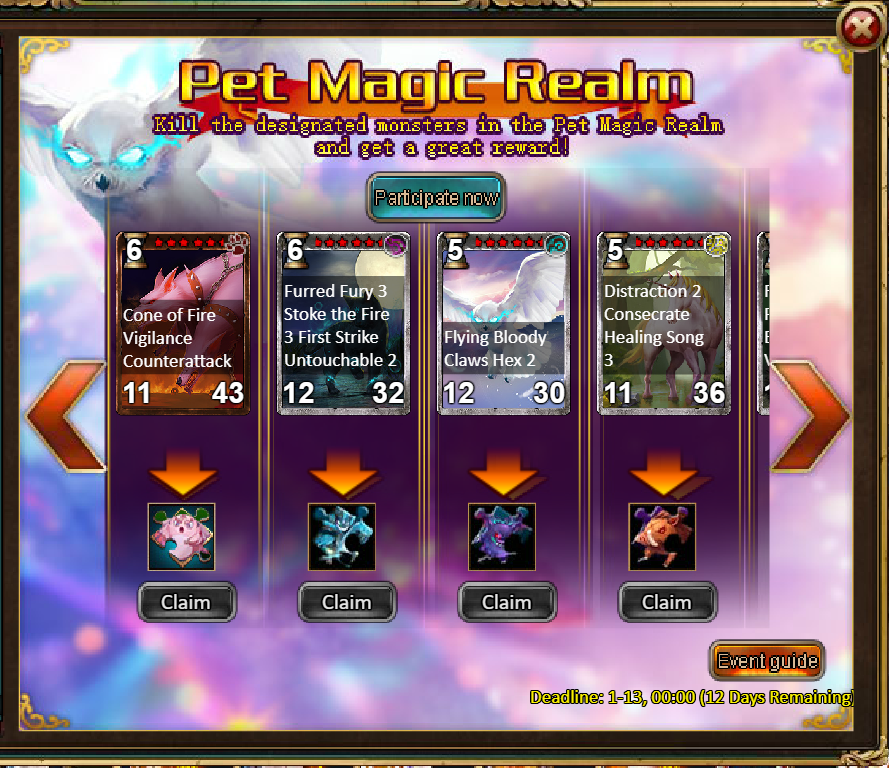 Consume 1,000 gold coins: Pet Magic Realm Ticket*3, Angel Box (Rare)*2, Silver*50,000