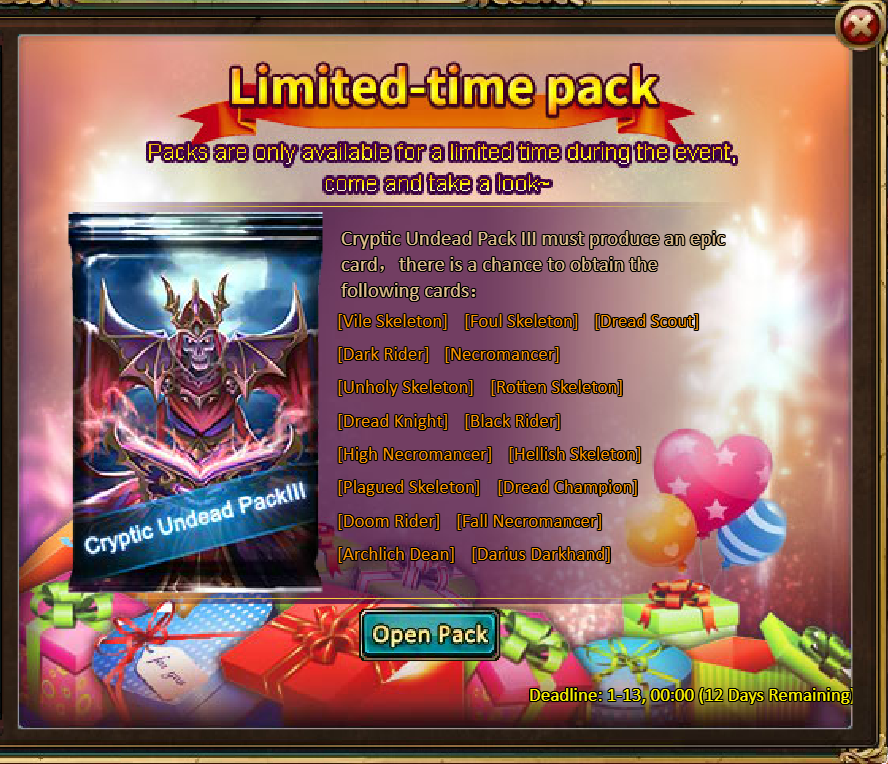 20 packs of Cryptic Undead Pack III - Opal Fragment*9 / Legendary Box*2 / Silver*500,000