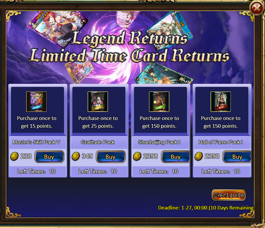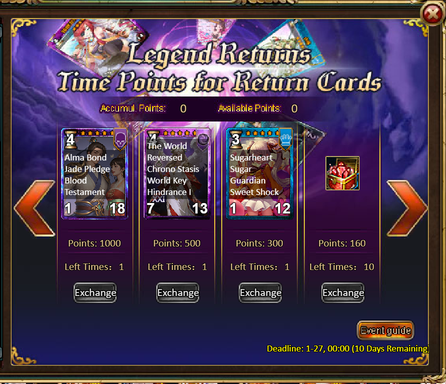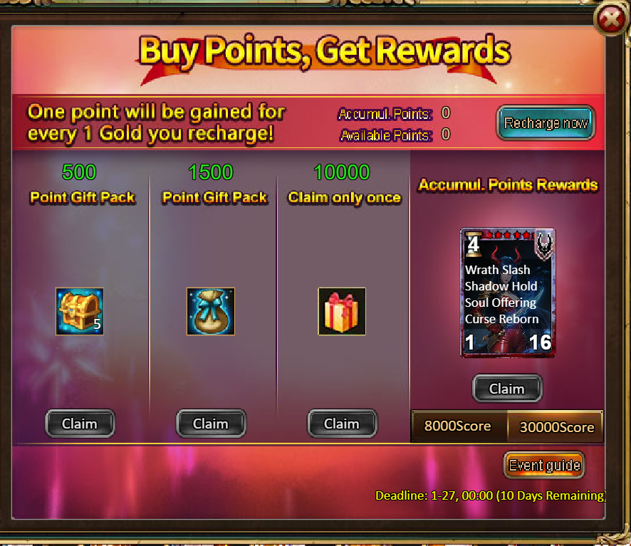 4.Buy Points, Get Rewards: 8000 - Shadowblade·The Reaper (Legendary) *1 / 30000 - Shadowblade·The Reaper (Godlike)*1