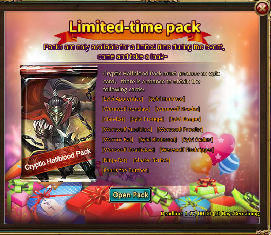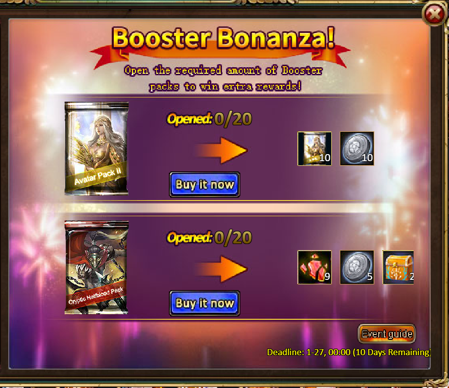 [b]13.Pack (Limited Time Event) - Booster Bonanza[/b]