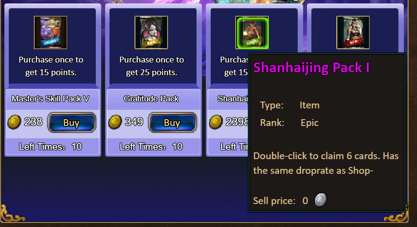 Consume 2,000 gold coins: Lunar Chest (Epic)*1, Fodder (Legendary)*10, Pet Snack*1