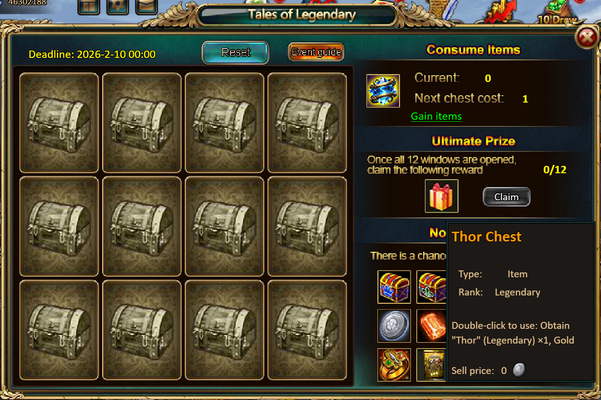 Consume 90,000 gold coins: Black Opal*1, Godlike Box II*6, Solar Chest (Legendary)*6, Silver*5,000,000[/u]