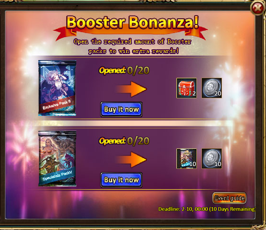[b]13.Pack (Limited Time Event) - Booster Bonanza[/b]
