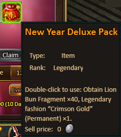 4.Buy Points, Get Rewards: 3000 - Crimson Gold (Good)*1 / 12000 - New Year Deluxe Pack (contains Crimson Gold (Legendary)*1, Lion Bun*1)