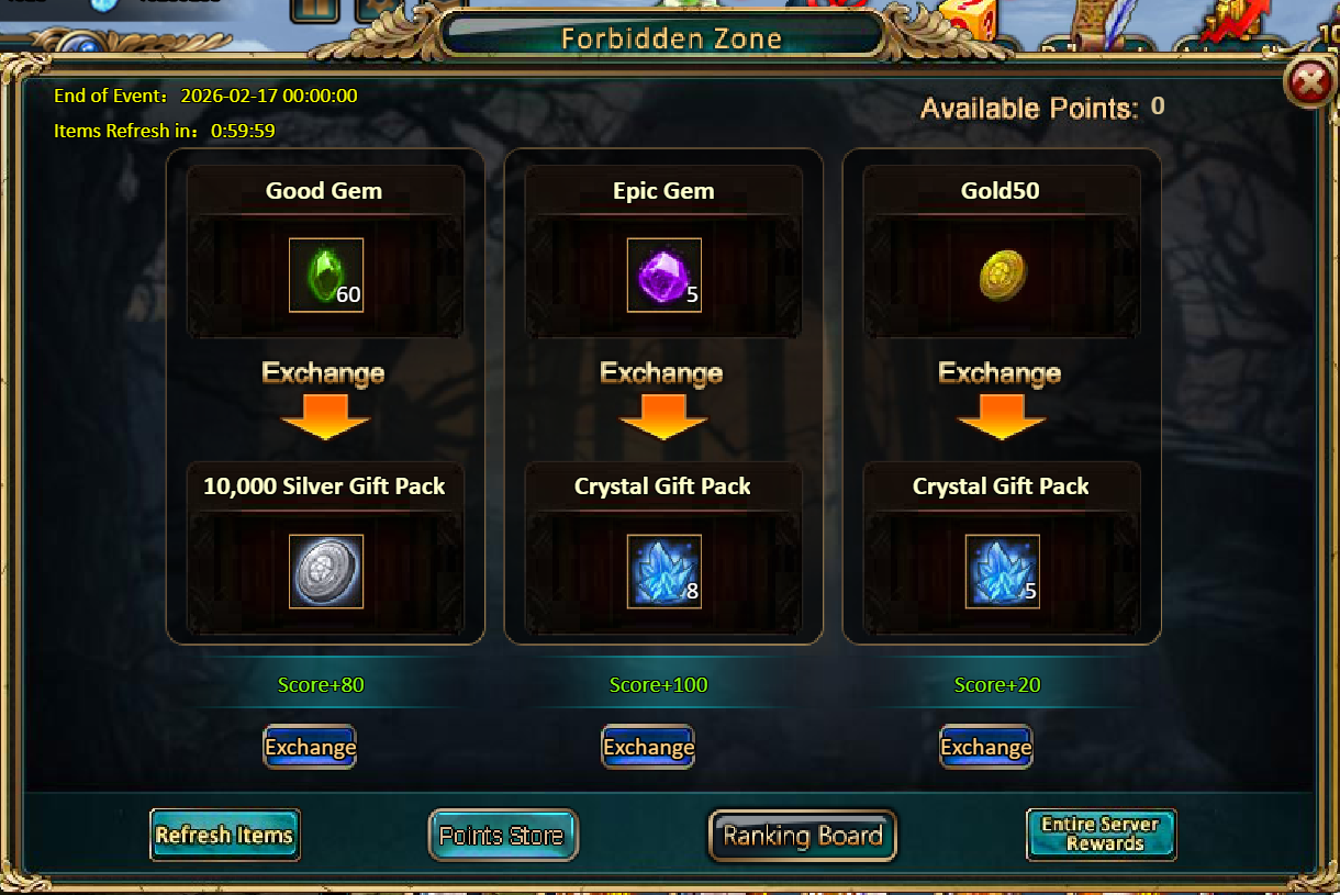 Consume 30,000 gold coins: Fire Ruby*2, Godlike Box II*2, Silver*3,000,000