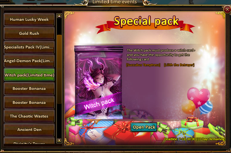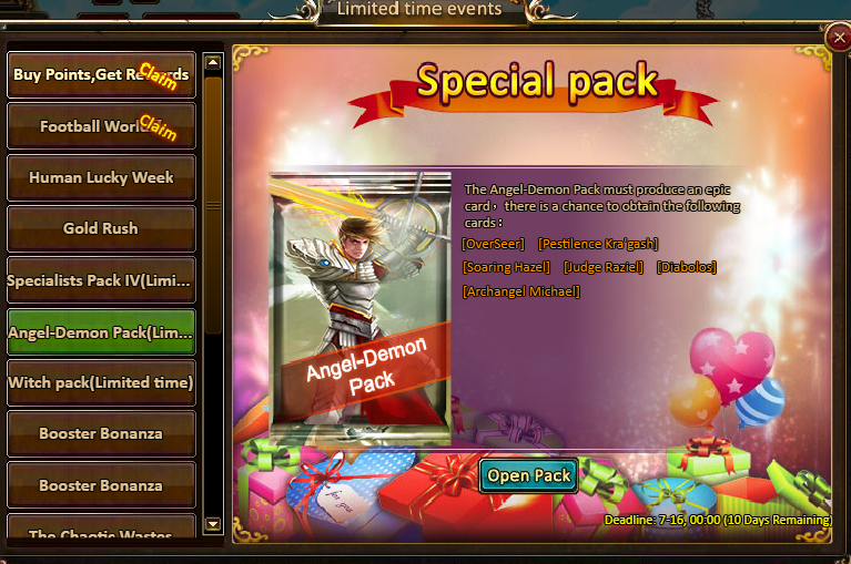 10 packs of Angel Demon Packs - Legendary Box*1 / Fodder (Epic)*10