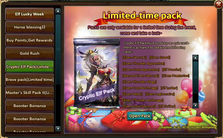 10 packs of Cryptic Elf Pack - Kristee Mass (Epic)*1 / Silver*500,000