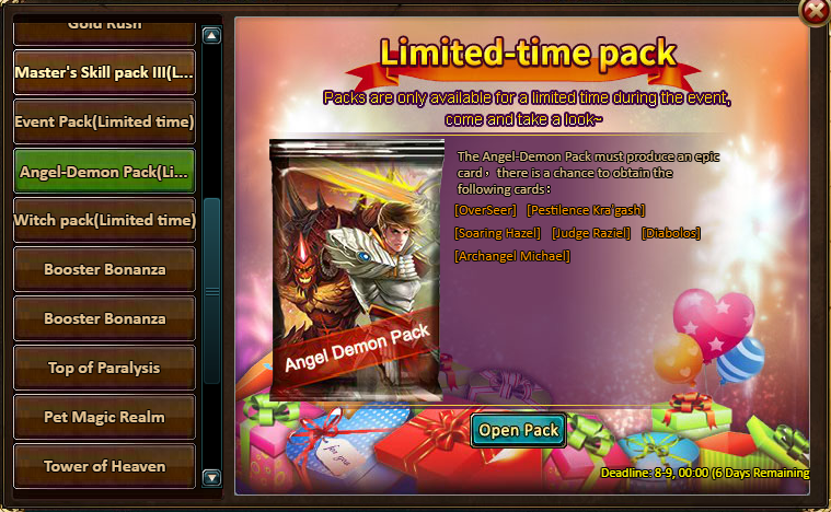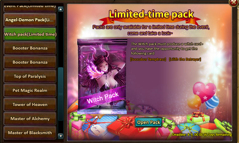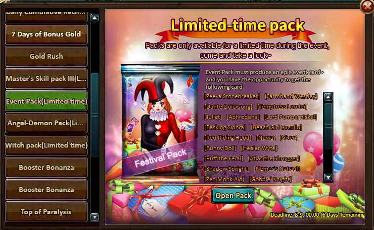 Gift Pack Contents: Festival Pack*2, Elixir of Energy (10 Energy)*2, Silver*100,000, Chaos Wastes Ticket*2