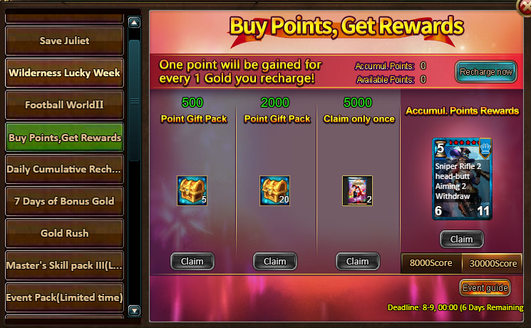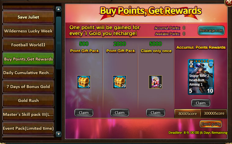 2.Buy Points, Get Rewards: 8000 - Policewoman Vivian (Legendary) / 30000 - Policewoman Vivian (Godlike)