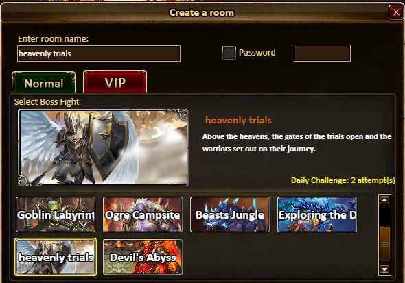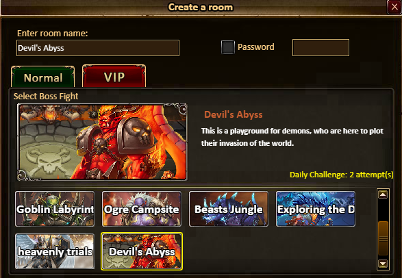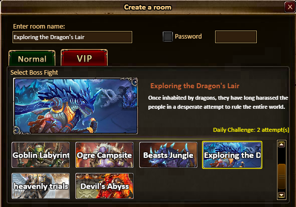 [b]VIP Challenge Hall: Dragon: Exploring the Dragon's lair; Angel: Heavenly Trials; Devil: Devil's Abyss