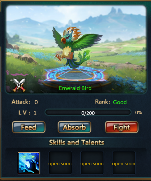 Consume 1,000 gold coins: Emerald Bird Fragment*10, Mystic Valley Ticket*3, Tender Steak Fragment*10