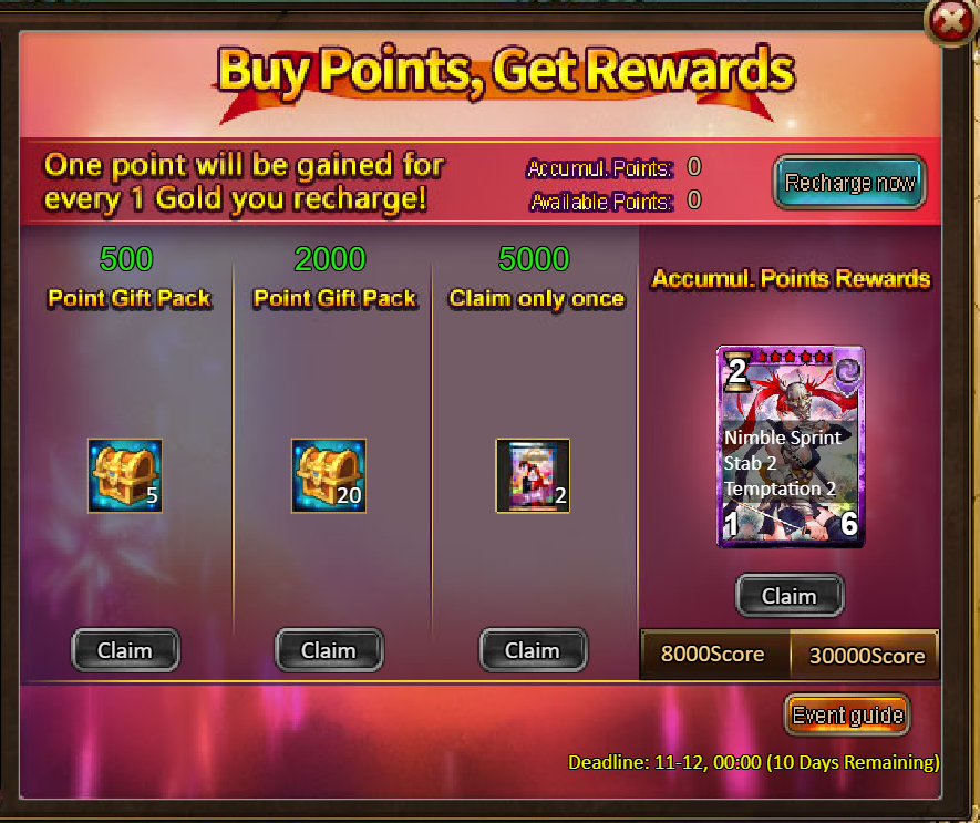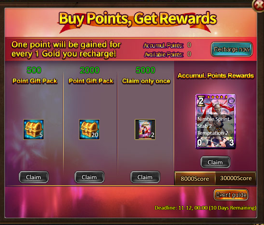 2.Buy Points, Get Rewards: 8000 - Orin Kenbayou (Legendary) / 30000 - Orin Kenbayou (Godlike)