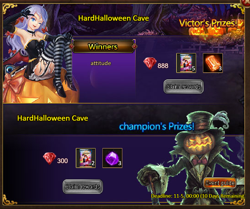 There are [b]first-pass rewards and clearance rewards for the "Fastest Challenge of Halloween."[/b]