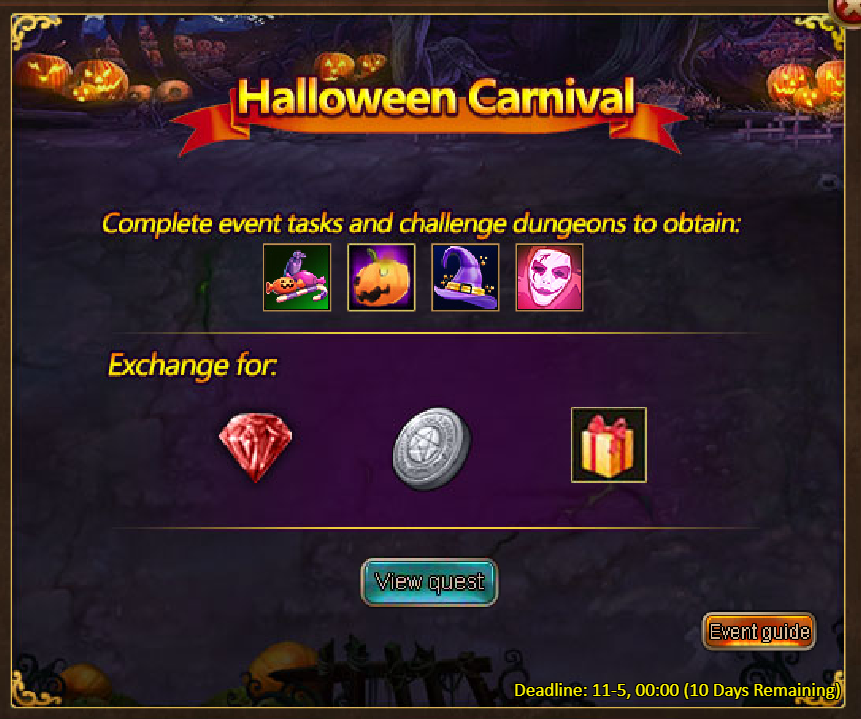 We are excited to announce that on [b]October 29, 2024, Server time[/b], a brand new Halloween special dungeon and events will be updated in the game!