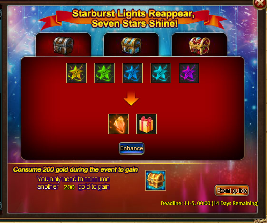 Consume 500 gold coins: Starlight Chest*1, Chaotic Wastes Ticket*2, Bread Fragment*10