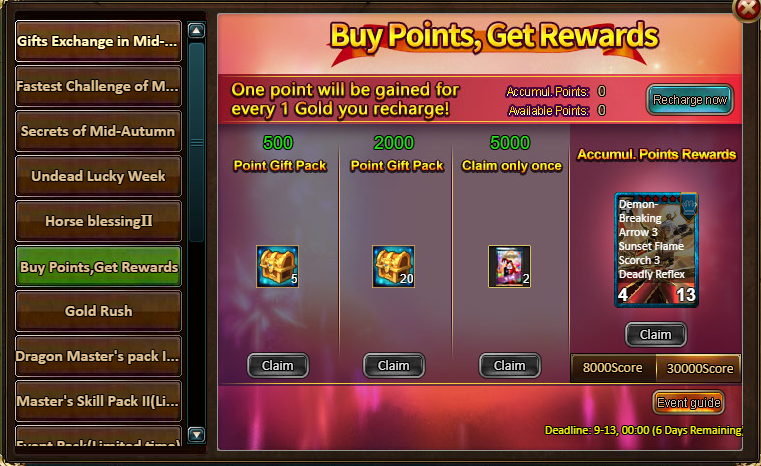[b]1.Buy Points, Get Rewards: 8000 - Chang'e (Legendary) / 30000 - Hou Yi (Godlike)