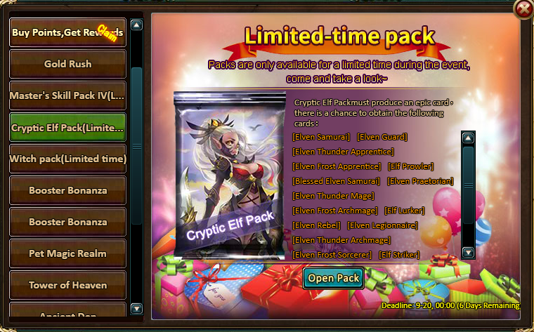 5 packs of Cryptic Elf Pack - Pi Fragment*10 / Epic Gem*3