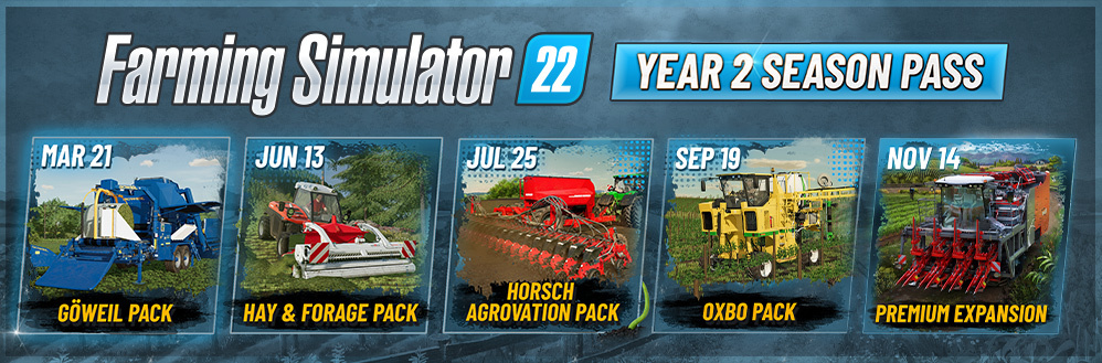 Pre-order the Oxbo Pack now and save 10%! If you want to extend your copy of the game with loads of new content, check out the [url=https://store.steampowered.com/app/1731910/Farming_Simulator_22__Year_1_Season_Pass/]Year 1 Season Pass[/url] and [url=https://store.steampowered.com/app/2178810/Farming_Simulator_22__Year_2_Season_Pass/]Year 2 Season Pass[/url]! Especially, since you save even more money compared to buying the packs and expansions separately.