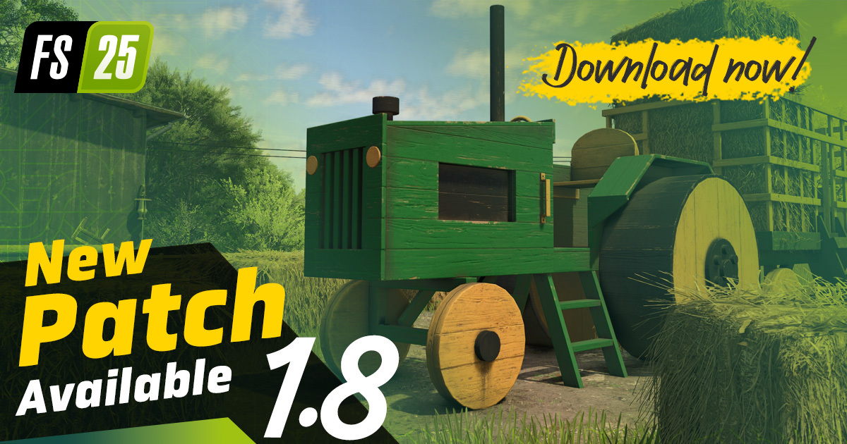 Patch 1.8 for Farming Simulator 25 is now available for download on PC and consoles, featuring new machines and many improvements. Find out what improvements are included in the changelog below!