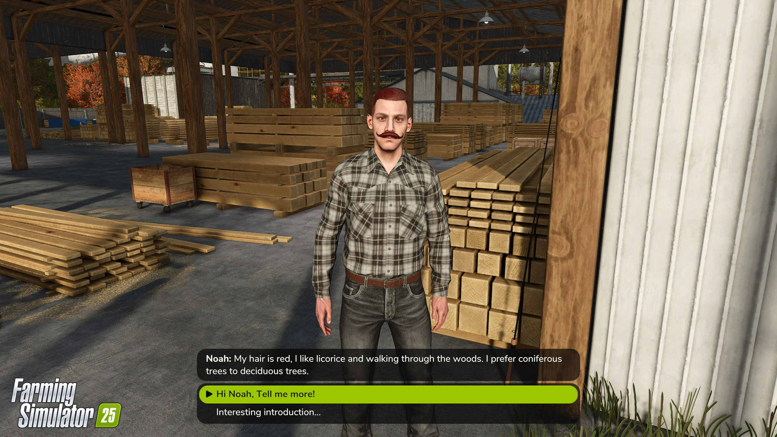 Noah is the local forester and lumberjack. His main profession is taking care of the forest, making sure it's handled with respect. If needed, he can explain the forestry basics.