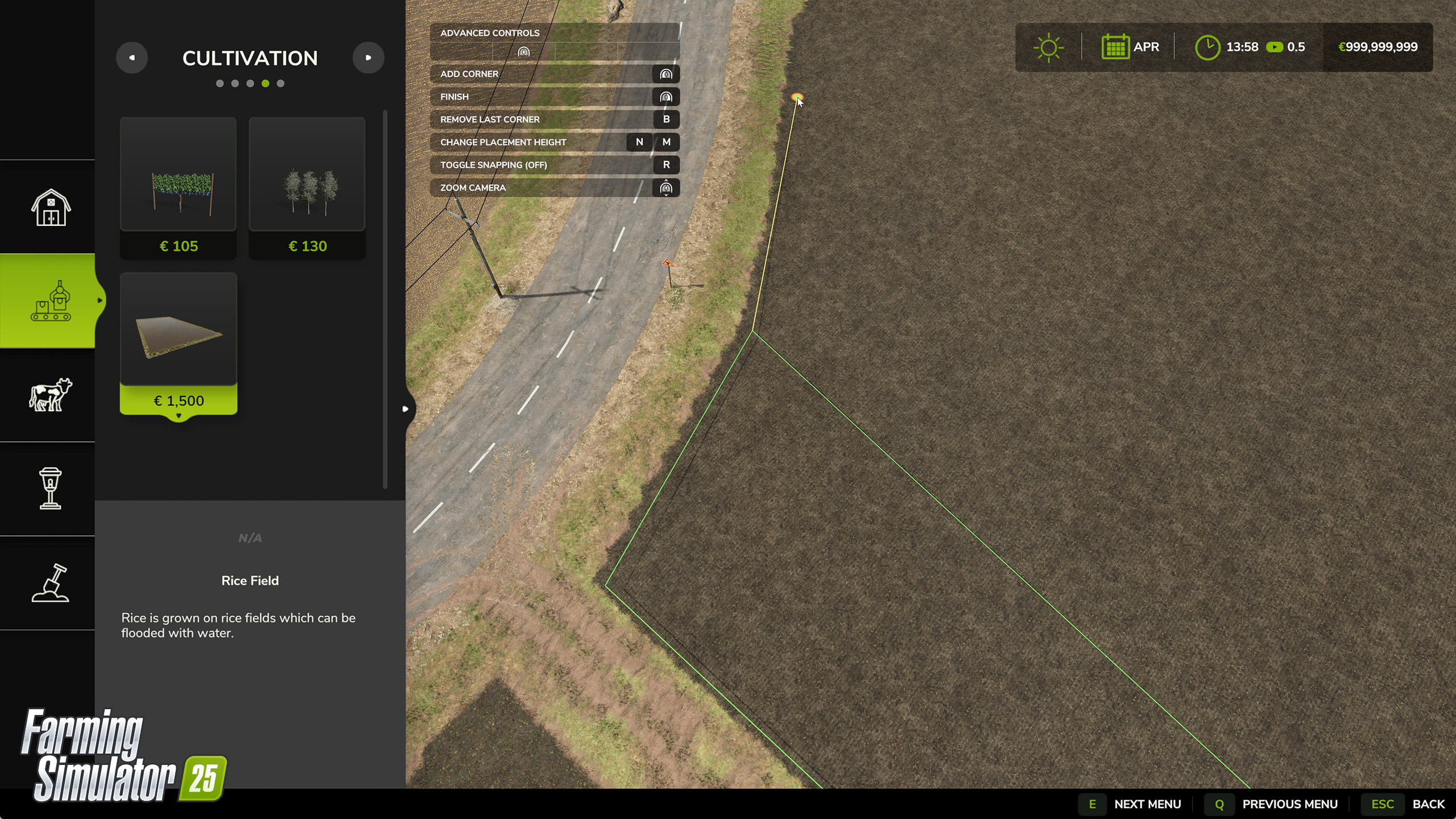 Via the build menu, you start the creation process. Instead of just placing down a field, you can shape it in any size or form.