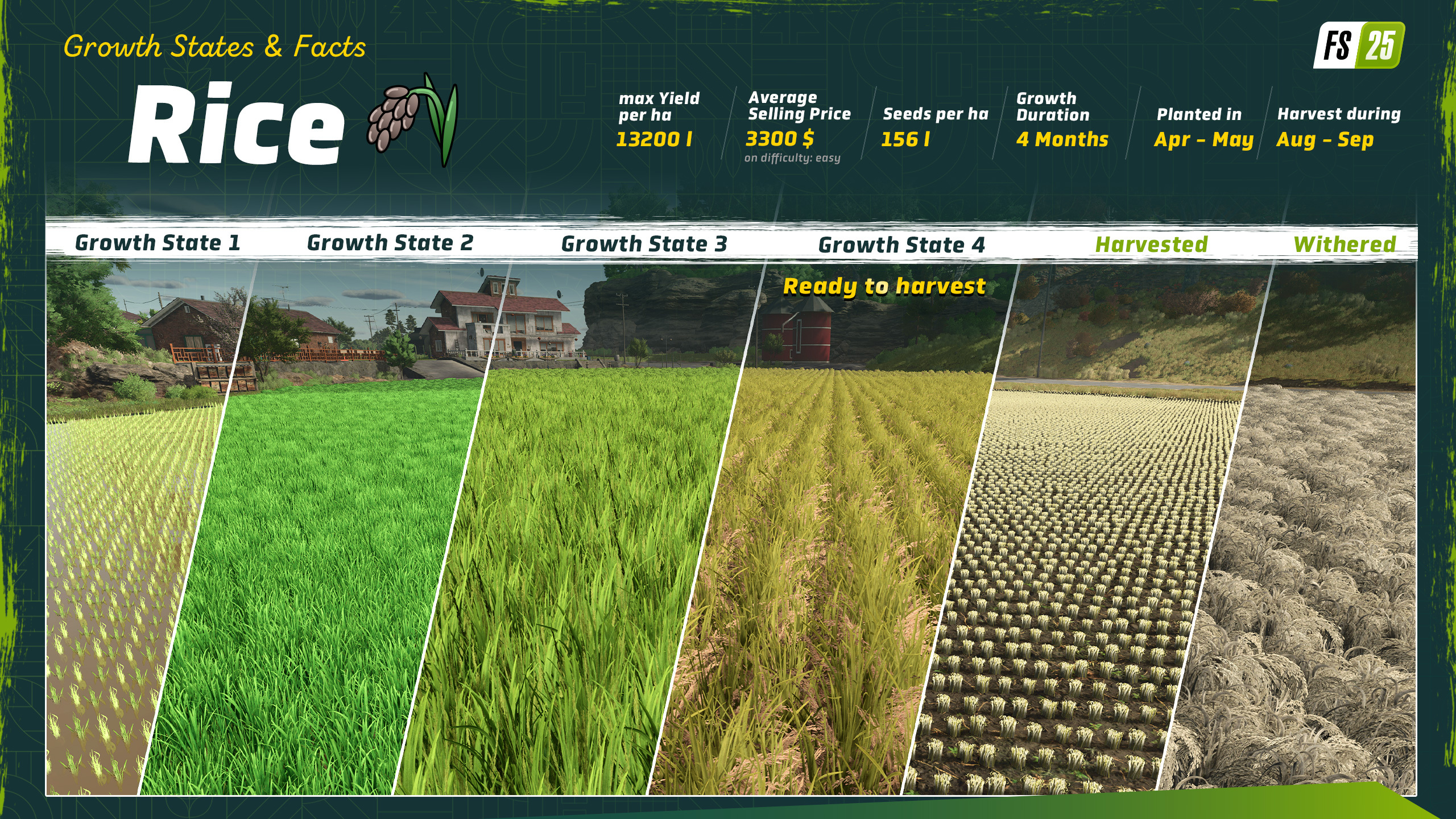 Sell it, store it, or process it further at select production plants. But we’re not done yet! To cultivate another batch of rice, apply lime to the field and cultivate the paddy with a cultivator.