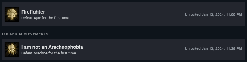 - [b]Prologue Achievements:[/b] As the achievement system that we have has had multiple issues, from bugs to general enjoyability, we have removed all but two achievements for the prologue; the first for defeating Ajax and the second for defeating Arachne.