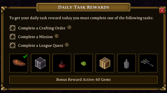 To celebrate the launch of this new system, we'll also be adding a Daily Task Reward Bonus this weekend only, where you can receive 60 gems for the in-game store on Saturday and Sunday (for a total of 120 gems for the weekend).