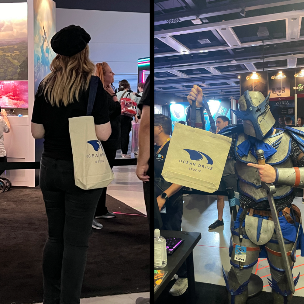 For PAX, we also brought some goodies to share with you, per our tradition! This time it was a canvas tote with our studio logo. Instead of trying to remember all 3 game titles, you can just search for us (Ocean Drive Studio) to find all 3 games… and some more ;)