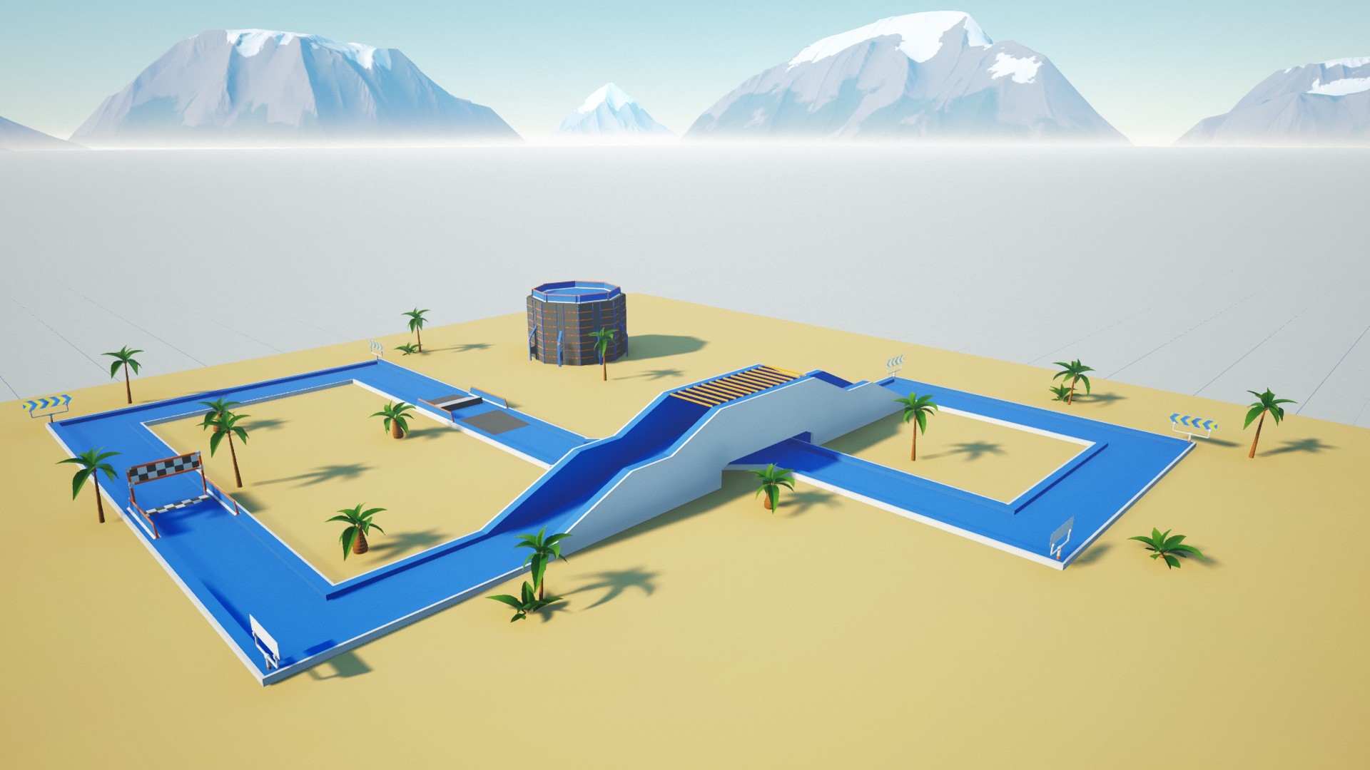 Size does matter! In this colossal sandbox map, you can go wild with your creations. Like Norrland, there is a lot of variety from airstrips, long open roads, and a vast sand landscape to chart. Explore SandyBox and find hidden Cosmetics.