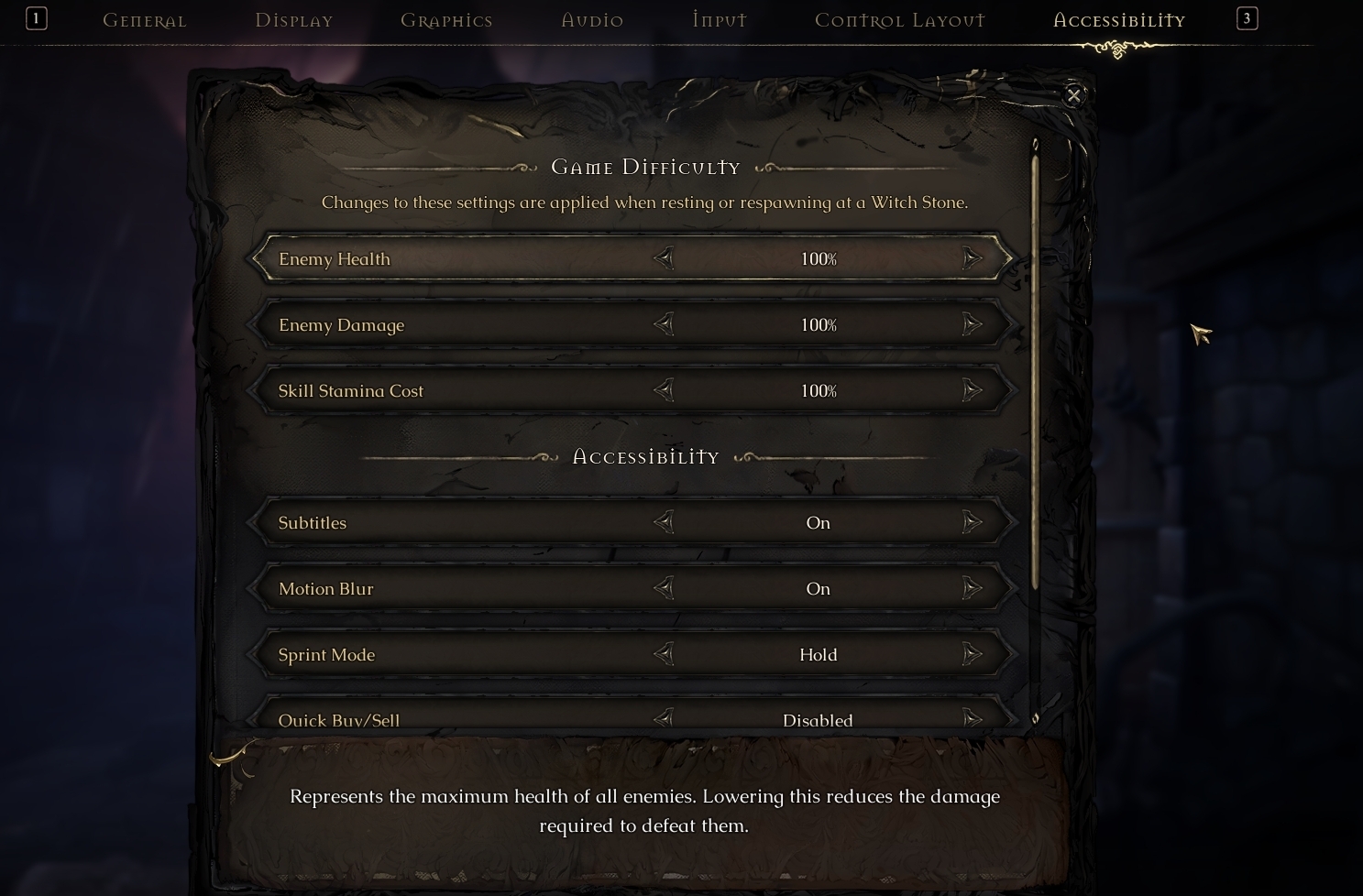 There's one more topic we believe deserves special attention. Our goal has always been to make Mandragora accessible to as many players as possible. While the game is primarily an action RPG, it is also a challenging experience with many Soulslike elements that seasoned players expect and enjoy from the genre. However, we recognize that this level of difficulty may not suit everyone for various reasons. To ensure more players can enjoy the game, we’re introducing the first set of our new Accessibility and Difficulty settings, with more accessibility options to come in the future. This includes three adjustable modifiers: Enemy Health, Enemy Damage, and Skill Stamina Cost, each of which can be customized to 100%, 90%, 80%, or 70%. These settings can be adjusted not only during character creation but also at any point in the game. So if a particular section feels too difficult, you can tweak the settings just for a tough boss fight and revert them afterward. We believe these changes will make [i]Mandragora[/i] more enjoyable for a wider audience, and we look forward to hearing your feedback.