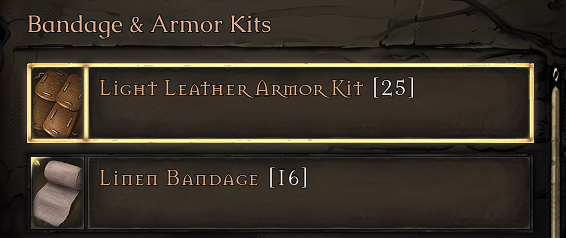 - [b]Linen Bandage[/b]: Restores 150 Health over 10 seconds.