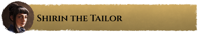 [b]Shirin may appear to be just a humble tailor[/b], but using her services can help mean the difference between victory and defeat. She can [b]craft Bandages[/b] to heal you, [b]and Armor Kits[/b] to temporarily strengthen and increase your Armor.