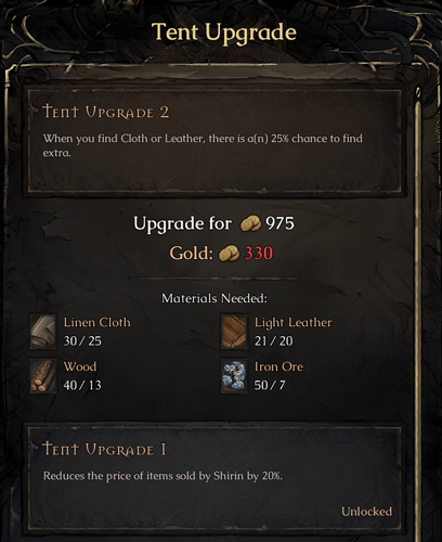 [b]Each Vendor will have their own place at your Caravan[/b]. Some will set up their Tents, while others will move in with their Carts. Vendor Carts and Tents [b]can also be upgraded for small bonuses[/b], such as cheaper crafting, longer-lasting effects of Consumables or extra Material drops!