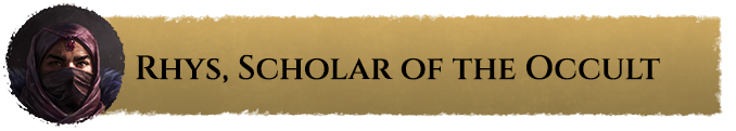 [b]Rhys [/b]has great[b] knowledge of the occult[/b], making him [b]skilled at crafting Runestones[/b] for you that can be used to [b]enchant certain Items: Helms, Chest Armor, and Weapons[/b].