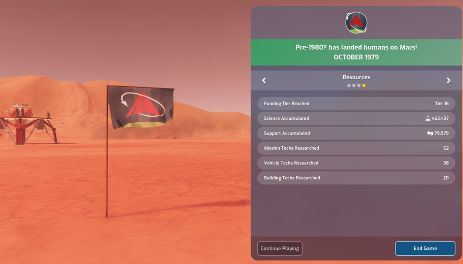 Over on the [url=https://www.reddit.com/r/MarsHorizonTheGame/new/]Mars Horizon Subreddit[/url], there's a different type of Space Race currently taking place. Reddit user SpareAnywhere8364 has been attempting to do what they can to land on Mars pre-1980 in Mars Horizon and they recently accomplished this great feat! ???? What's even greater than this is that their crusade continues as they aim to do it even earlier! They've been sharing their progress along the way and, at the time of writing this newsletter, they've just reached Mars in 1977! ???? A huge well done to them on this feat and we look forward to checking your progress from here. [url=https://www.reddit.com/r/MarsHorizonTheGame/new/]See more on the Mars Horizon Subreddit[/url] [url=https://www.reddit.com/r/MarsHorizonTheGame/new/]