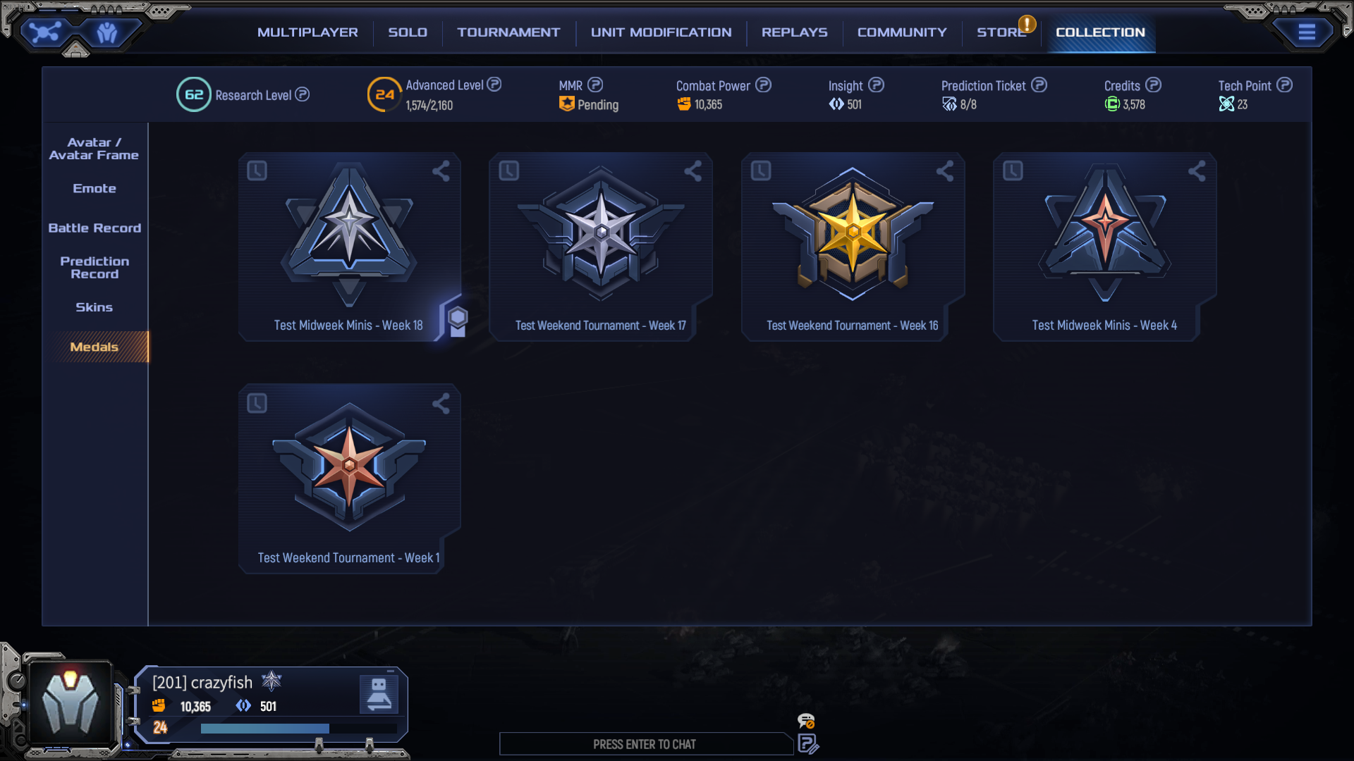 The new medal system allows players to collect and display medals earned in-game. Currently, medals are only available through tournaments, with additional sources planned for the future.