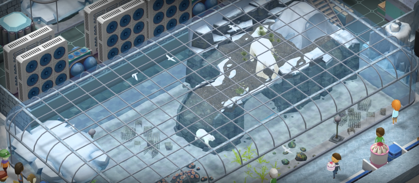On the other side we have the aquatic polar animals who need a special enclosed polar dome supported by racks of compressors and air-conditioners!
