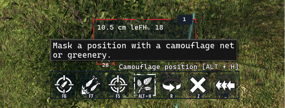 [b]Bonus fact:[/b] even ordinary bushes can give camouflage to a unit if you control a soldier or a small gun. So you don't always have to spend time masking them manually when nature can do it for you.