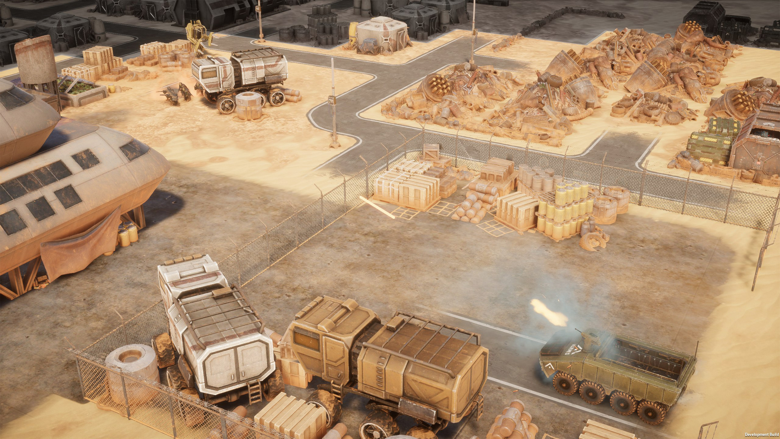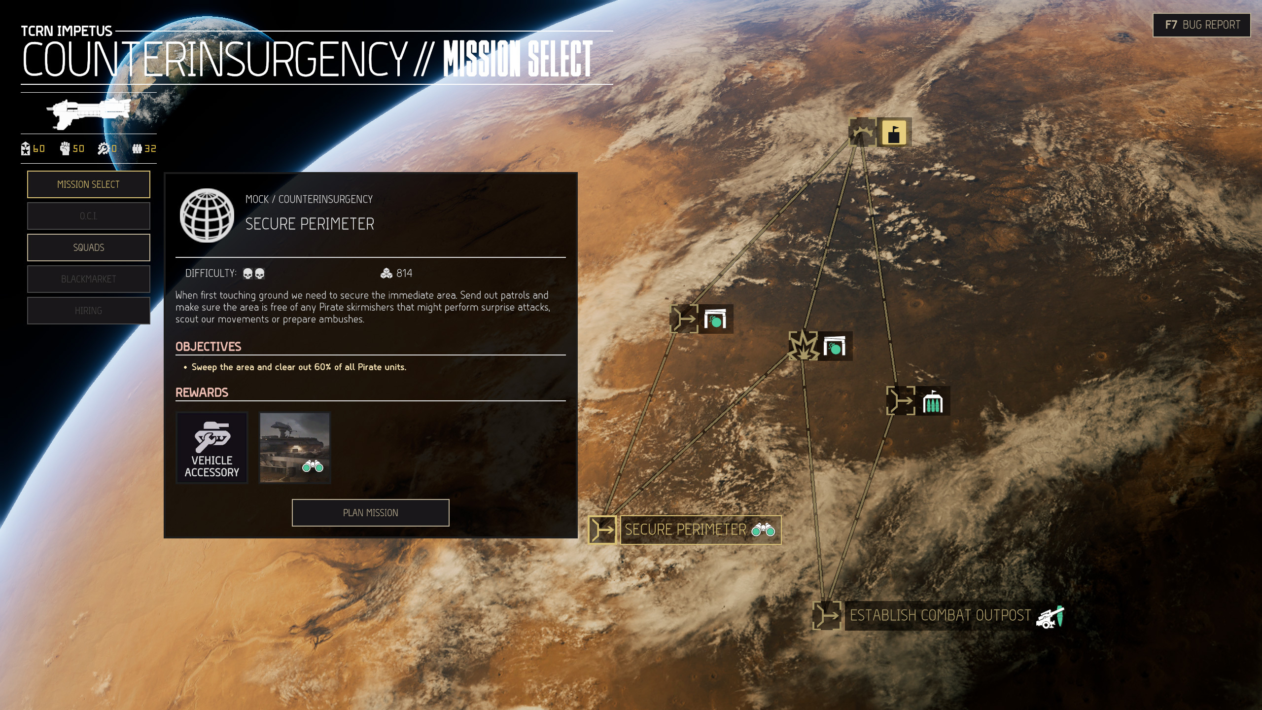 Operations consist of multiple missions on a desert biome planet, giving you access to the tactical layer of the game. They are procedurally generated from a pool of ten mission types, so you can replay them as often as you like, even within this demo slice. Different operations can branch into multiple paths leading to the final mission