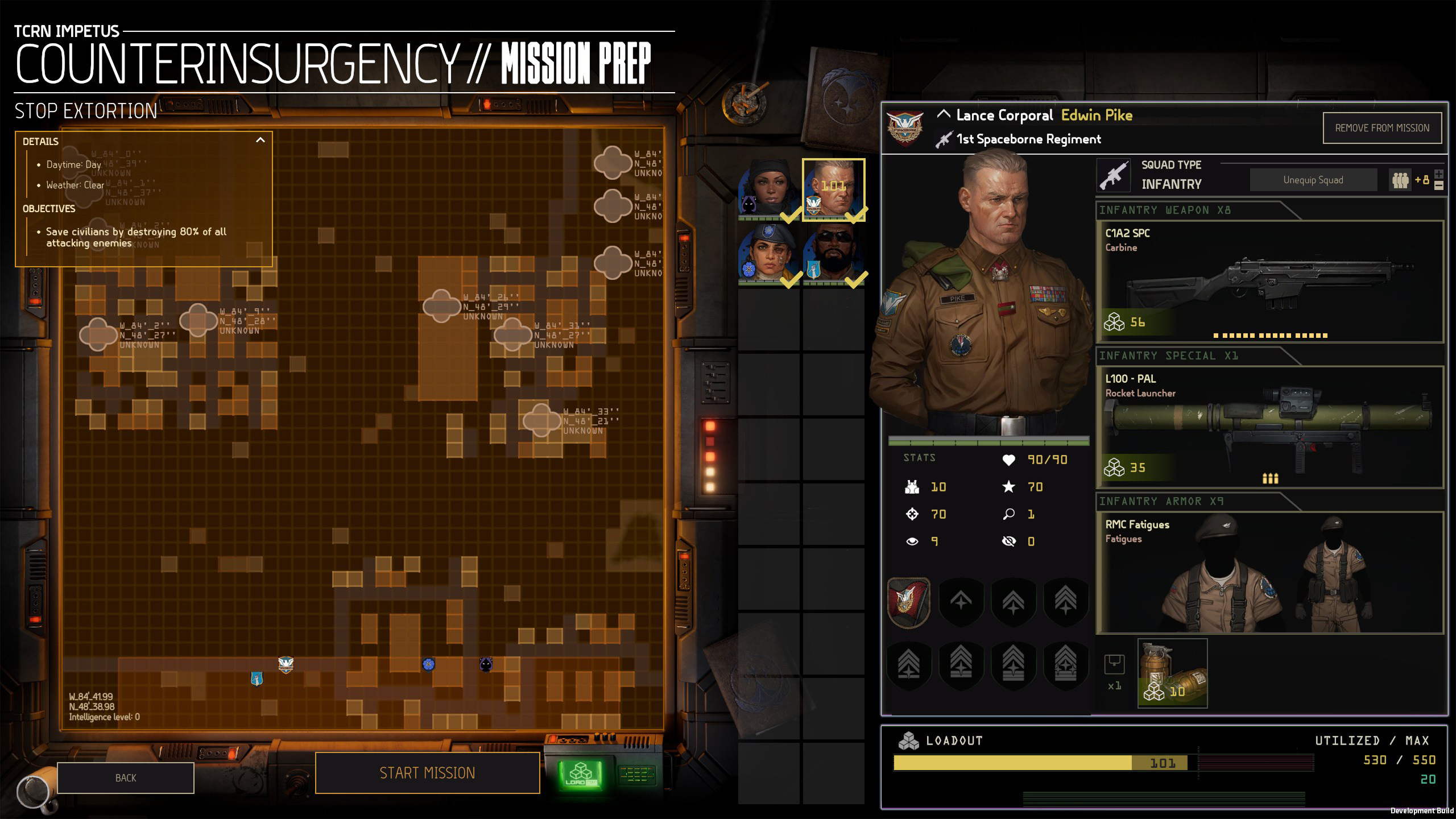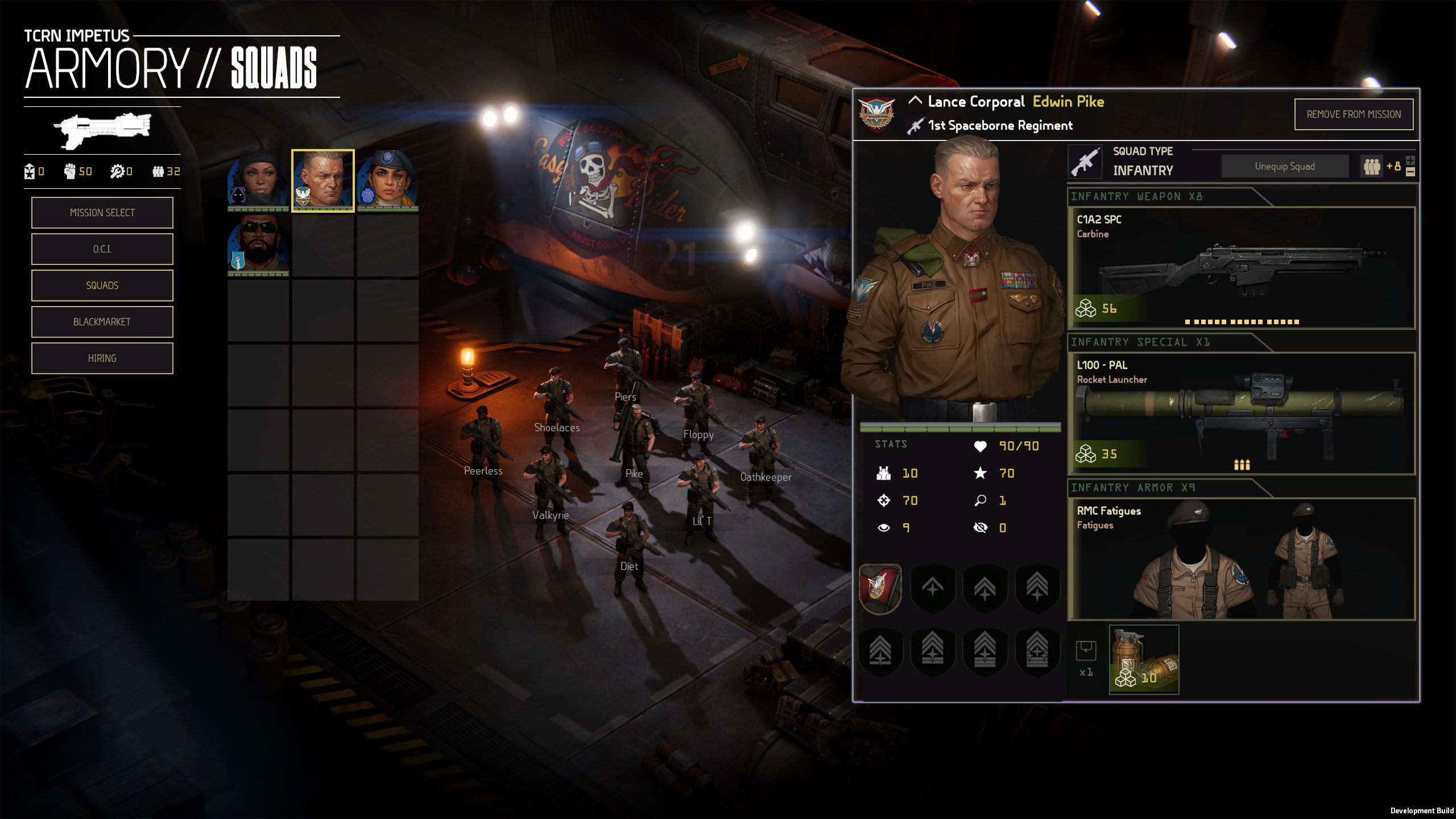 You’ll have six squad leaders to build your team, supported by a wide range of infantry weapons, special weapons, armor, and accessories. Leaders can be upgraded through promotions, and you can draw from a limited pool of squaddies in the upper left of the loadout screen to expand your squads. [quote]Note: Supplies are limited, so not every squad can enter battle fully equipped.[/quote]