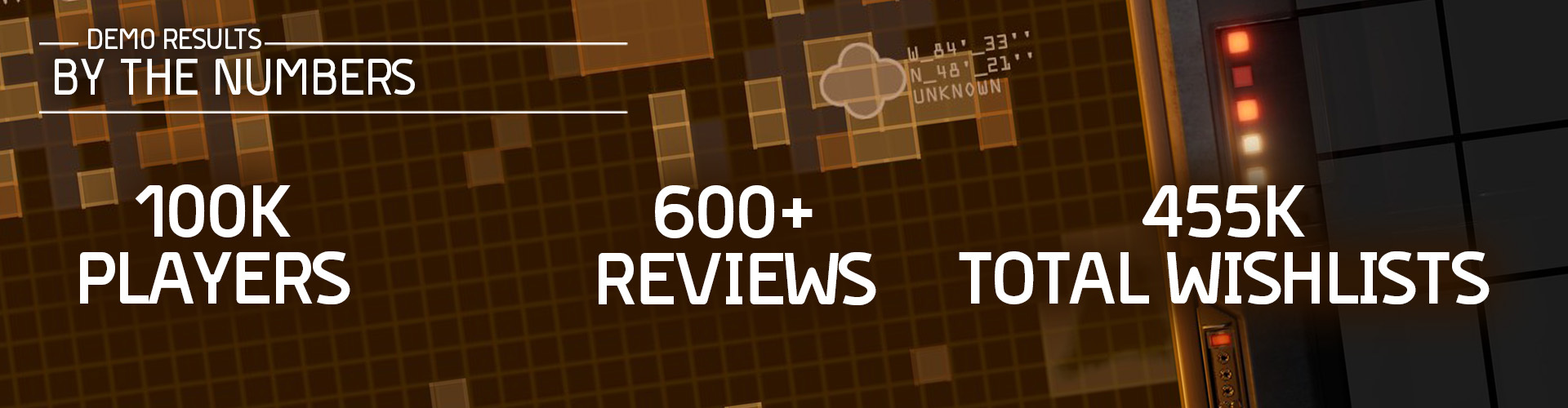 [hr][/hr]So far over [b]100,000 players[/b] downloaded the MENACE demo, sent in over [b]1,300 feedback and bug reports[/b], and left over [b]600 reviews[/b] that amount to a [b]Very Positive[/b] rating.