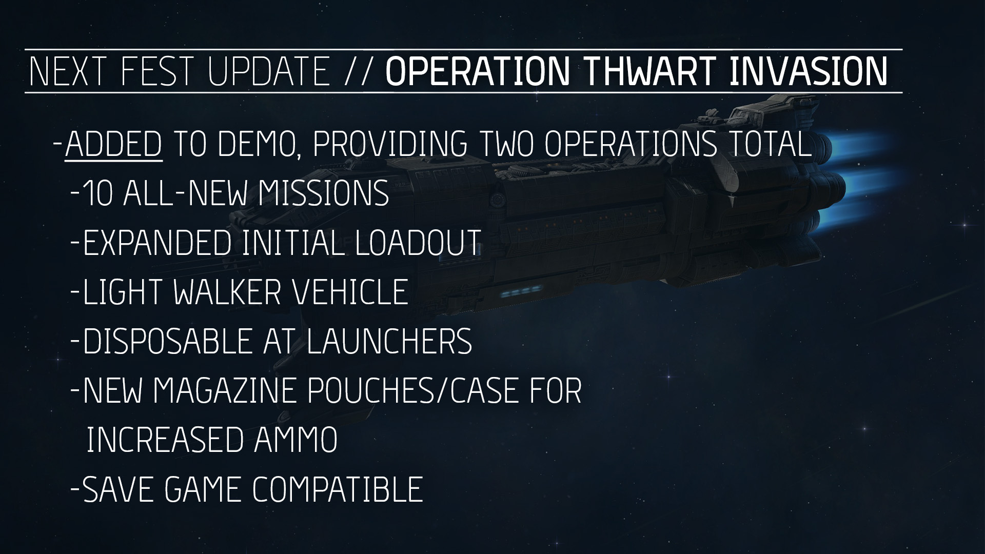 [hr][/hr]With Next Fest starting on Monday, we are also updating the game with an entirely new Pirate [b]“Thwart Invasion” Operation[/b] with 10 all-new missions and loads of new equipment to experiment with, from light walkers and autocannons to disposable AT launchers. This should give you a fresh taste of MENACE and provide even more amazing feedback to help shape development.